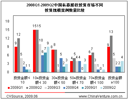 2.2009年第二季度中国私募股权投资市场投资规模分析