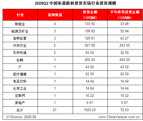 第二部分:2009年第二季度中国私募股权投资市场投资统计分析