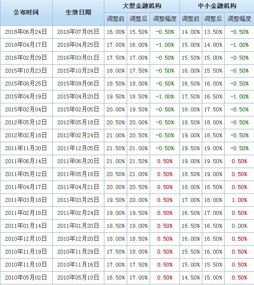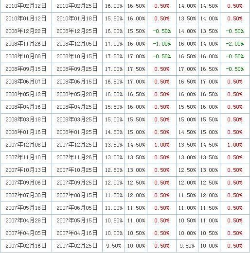 附:存款准备金率历次调整一览