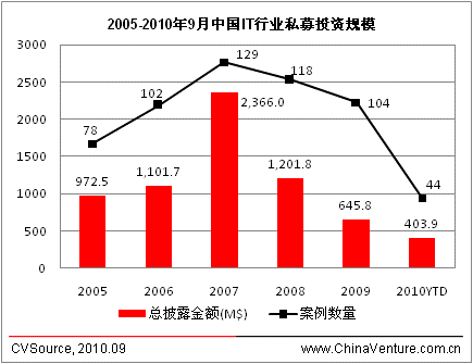 图为2005-2010年9月中国IT行业私募投资规模