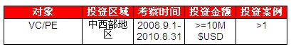 跟据ChinaVenture旗下数据库产品CVSource统计显示,2008年8月至2010年9月的两年间,超过130家私募股权投资机构参与投资近200家中西部地区企业,总投资金额超过50亿美元;共有40家有VC/PE背景中西部地区企业实现IPO,涉及退出机构超过70家,以并购方式退出的机构也在10家以上。
