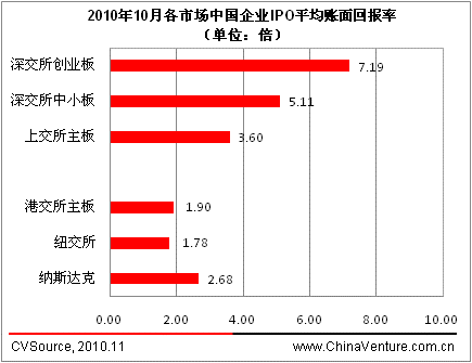 图2 2010年10月各市场中国企业IPO平均账面回报率